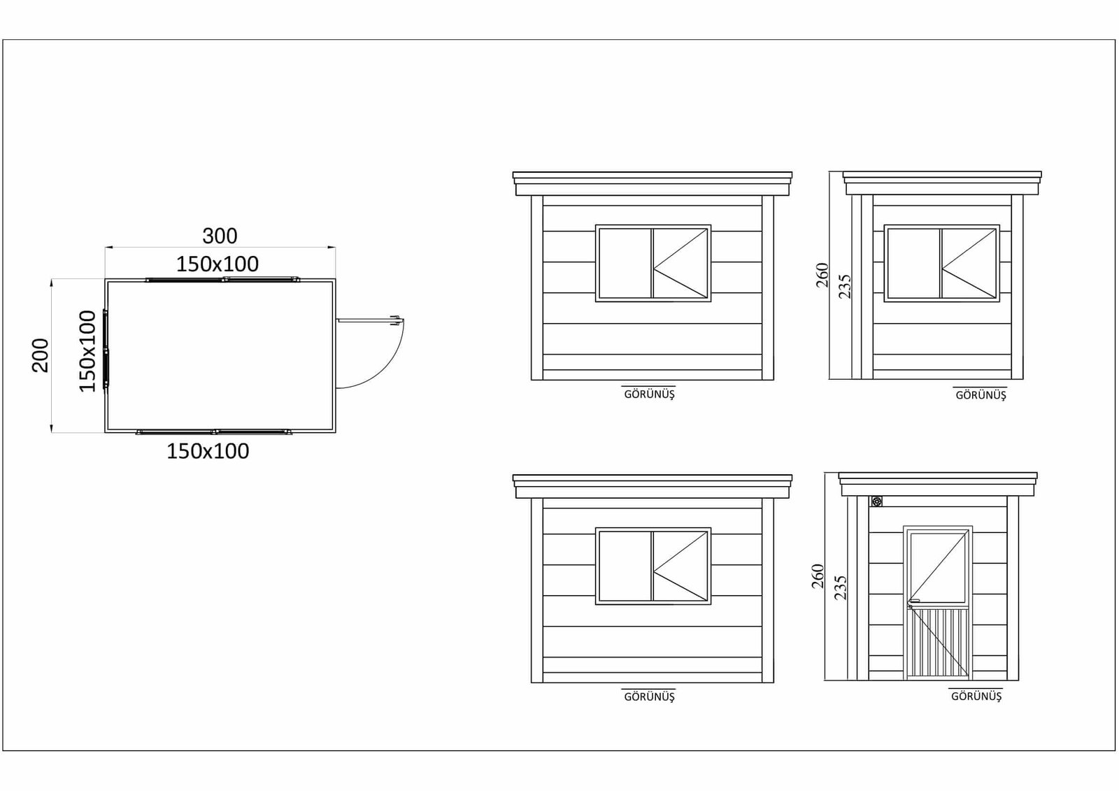 • İç yüzey kaplaması: 8 mm kalınlığında betopan levha; opsiyonel olarak PVC lambri uygulanabilir.